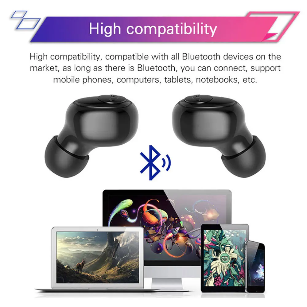 Цвета: белый, черный Материал: АБС-пластик Производительность: TWS bluetooth-гарнитура Особенности: Поддержка беспроводной зарядки + с дисплеем батареи + может сделать мобильную мощность для зарядки телефона Применимые модели: подходят для всех мобильных телефонов и смарт-устройств с функцией Bluetooth Версия Bluetooth: 5,0 + EDR Режим протокола: A2DP, AVRCP, HSP, HFP Подсказка: регулируется на китайском и английском (после загрузки Нажмите кнопку питания 2) Эффективное расстояние: 10 м (доступно) Одновременное подключение двух телефонов с Метод бинаурального сопряжения: Автоматическое Сопряжение после загрузки Диаметр рога: 8 мм Сопротивление: 32 Ом Чувствительность: 42db Искажение: ± 5% Емкость аккумулятора: наушники 55 мАч, отделение для зарядки: 3500 мАч Время использования наушников: 4-6 часов (в зависимости от громкости) Интерфейс зарядки батарейного отсека: micro USB Вес одного уха: 3 г Размер изделия: наушники 1,5*2,5*1,8 см; батарейный отсек 8*4,3*3,5 см Комплектация: 2х bluetooth-гарнитура, 1х батарейный отсек, 1х usb-кабель, 1х руководство на китайском и английском языках, 2х Ушная крышка