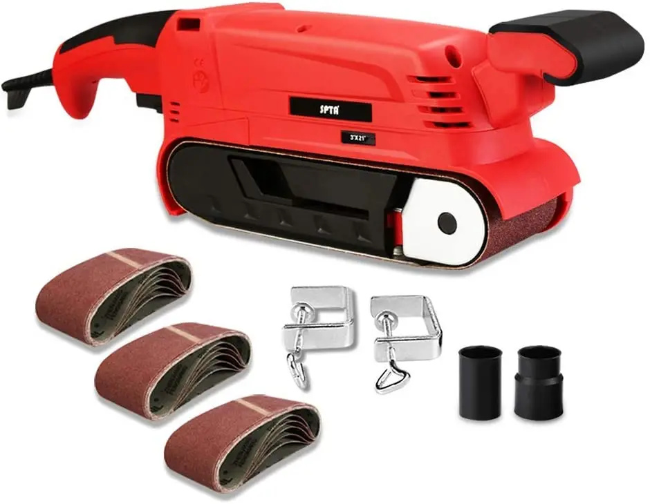 Ленточный и настольный шлифовальный станок, оснащенный двумя металлическими винтовыми зажимами, ленточный шлифовальный станок SPTA может быть перевернут и закреплен на стол, действуя как скамья шлифовальный станок, кнопка блокировки помогает освободить вашу руку, обеспечивает больше удобства и гибкости. 14 ремней и легко заменить поставляются с 14 шт. 80 #3x21 дюймовыми шлифовальными лентами, подходящими для работы с высокими напряжениями и широкой областью, экономя ваши деньги, удовлетворяя требованиям для ваших различных проектов. Металлический зажимной рычаг для легкой и быстрой замены шлифовального ремня. Регулятор переменной скорости с 6 циферблатами позволяет сочетать лучшую скорость с приложением от 0 до 560 об/мин. 5 амперный двигатель обеспечивает большую мощность шлифовальной поверхности, обеспечивая эффективное удаление и высококачественную отделку. Съемная Пылезащитная коробка съемная, легко устанавливается и снимается, легко очищается от пыли. Два вакуумных пылесборника, 32 мм и 35 мм позволяют подключить пылесос, достигая идеального эффекта сбора пыли. Что вы получаете 1 шт. ленточный шлифовальный станок, 14 шт. 80 #3x18 дюймов шлифовальный ремень, 2 шт. фиксированные винтовые зажимы, 2 шт. вакуумные адаптеры и наш лучший сервис.
