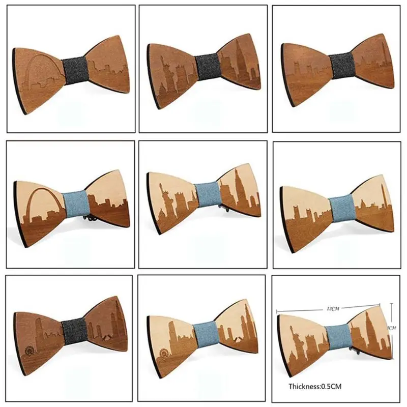 Ручная работа, высококачественный деревянный галстук-бабочка с уникальным цветом и известными узорами американского города.