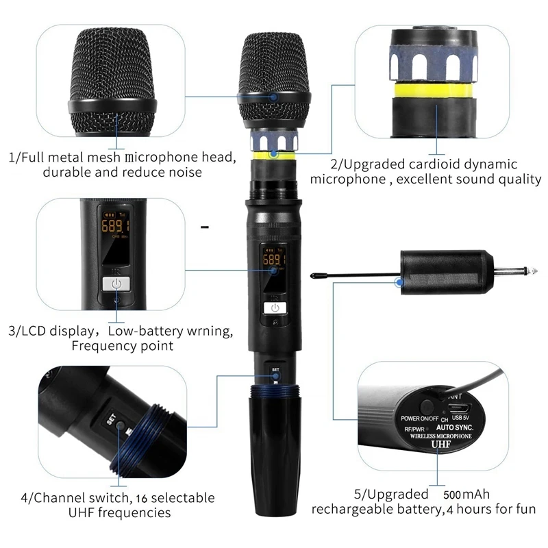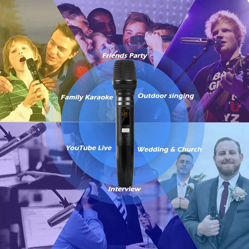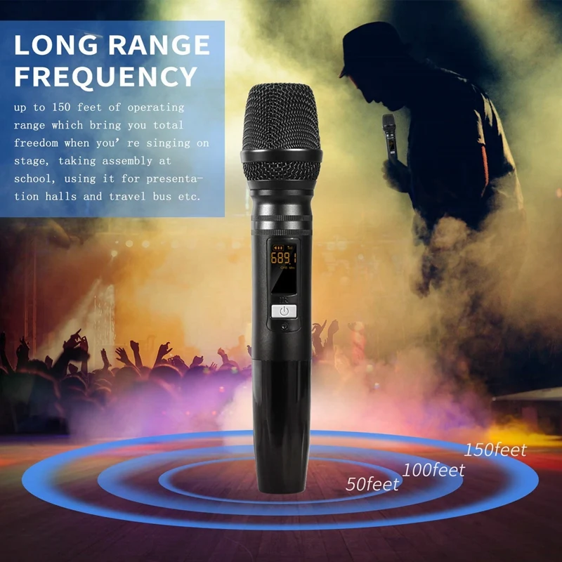 Беспроводная портативная микрофонная система для караоке, вечерние, DJ, деловые встречи, выступления или другие мероприятия на открытом воздухе и в помещении.
