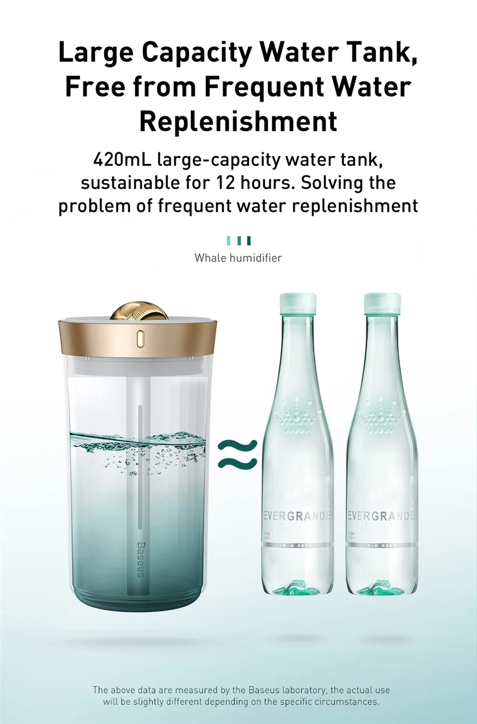 ●Увлажнение с большой спрейРезервуар для воды большой емкости объемом 420 мл экономит ваши проблемы с частым добавлением воды Ультразвуковая Вибрация обеспечивает большой распылитель и тонкую и равномерную текстуру.