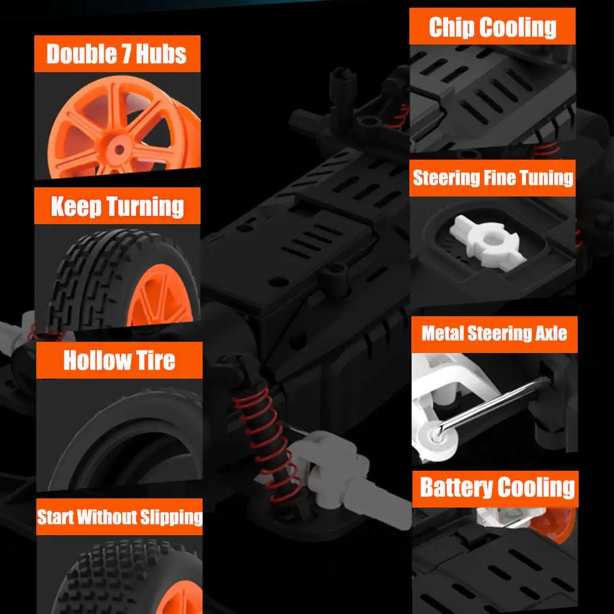 -Функции: вперед, назад, поворот налево, поворот направо, пульт дистанционного управления 2,4G, система с двумя дисками, 38 км/ч