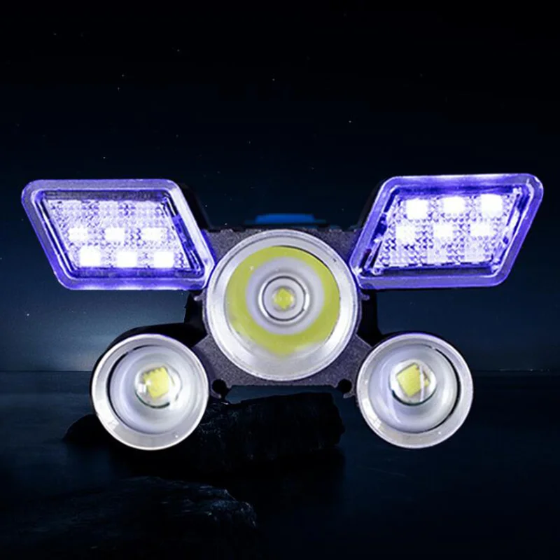 - 9Режимы для бесконечного использования: предпочитаете ли вы использовать основной светильник, два боковых светильника светильник s, три точечный светильник s, светильник с приближением, полный свет, SOS, SOS + основной светильник, точечный + стробоскоп, боковой светильник s + стробоскоп.