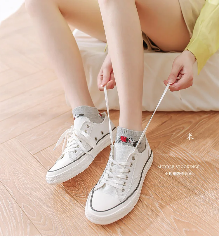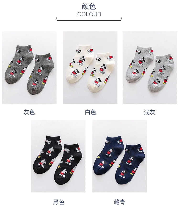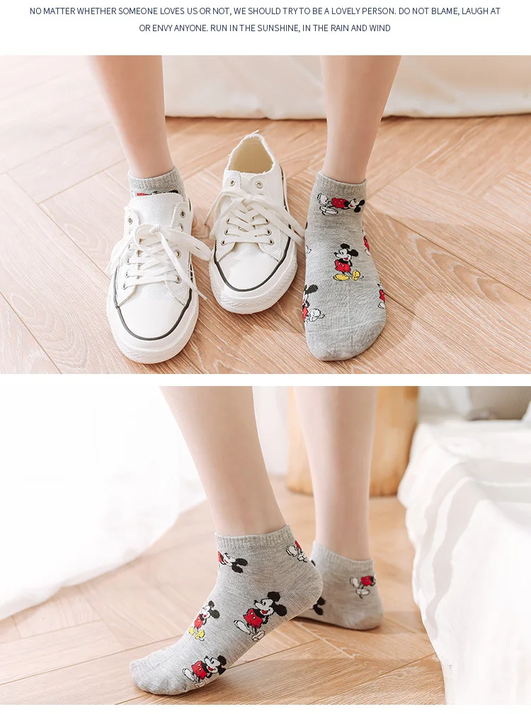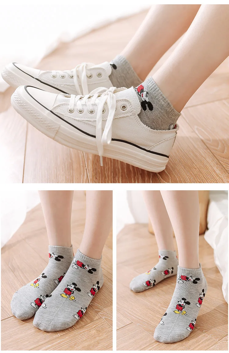 Женские лодочные носки в Корейском стиле с Микки Маусом Модные женские короткие летние носки с милым мультяшным персонажем из мультфильма «Харадзюку» хлопковые носки