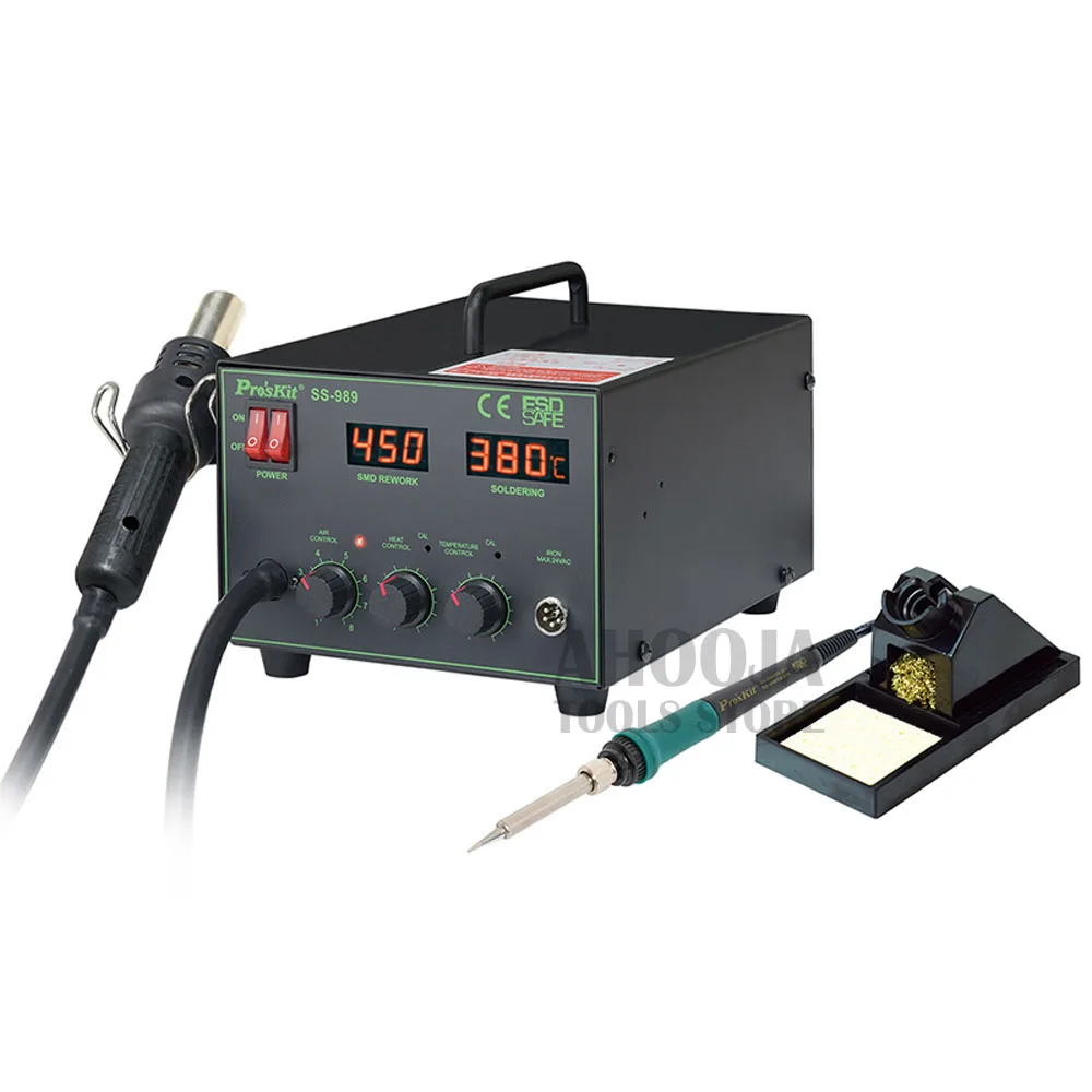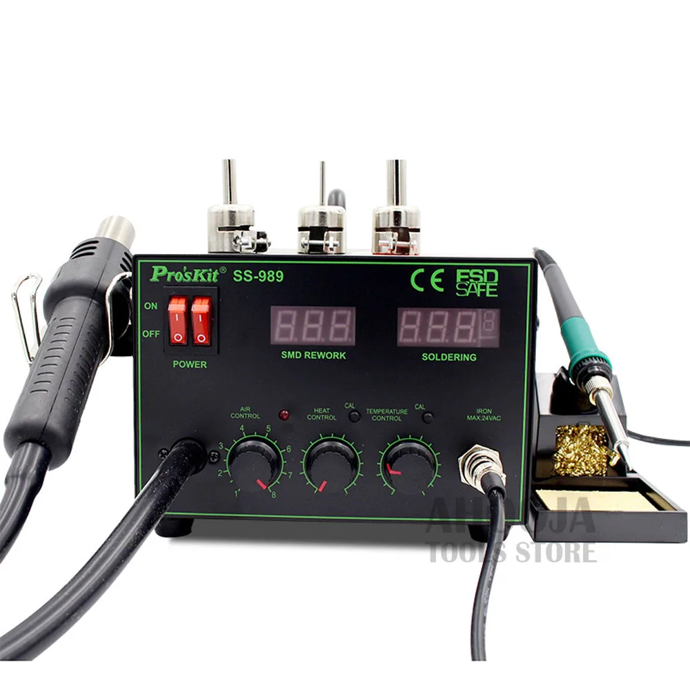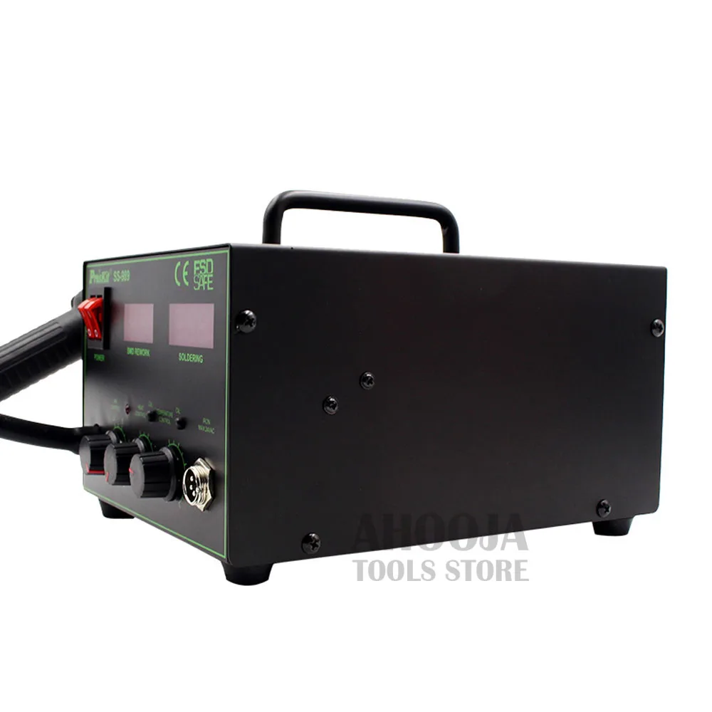 Характеристика продукта: 2в1 Многофункциональный SMD тепловой пистолет Электрический паяльник Тепловая пушка, контроль температуры и дизайн паяльника Используйте точную цифровую схему контроля температуры ЦП, точную температуру, стабильность ветра Двойная кнопка питания, тепловая пушка и Электрический паяльник могут работать отдельно Цифровой дисплей температуры и ветра Высокоэффективный паяльник с контролем температуры, датчики внутри, точный контроль температуры Тепловой пистолет использовать датчик предварительной температуры и электронный замкнутый контроль температуры Низкий уровень шума, устойчивость к ветру Автоматическая система охлаждения, с безопасностью и продлением срока службы функции теплового генератора Газовая герметичная конструкция и паяльник с контролем температуры, нагреватель можно легко заменить Полное сопло горячего воздуха и размер наконечника, содержащий три общих циркулярных сопла горячего воздуха Характеристики продукта: Входное напряжение: 220 В 50 Гц Потребляемая мощность: 700 Вт Потребляемая мощность паяльника: 60 Вт Температура паяльника: 200C-480C Температура теплового пистолета: 100C-450C Нагревательный элемент: металлический нагревательный сердечник Емкость: 24 л/мин (макс.) Шум: 45Db Температура Дисплей: светодиодный Размер: 255*190*140 мм Заменить тепла во рту 9SS-900-A1 (2,2 мм) * 1 шт Sss-900-a2 (6,6 мм) * 1 шт Sss-900-a3 (8,5 мм) * 1 шт
