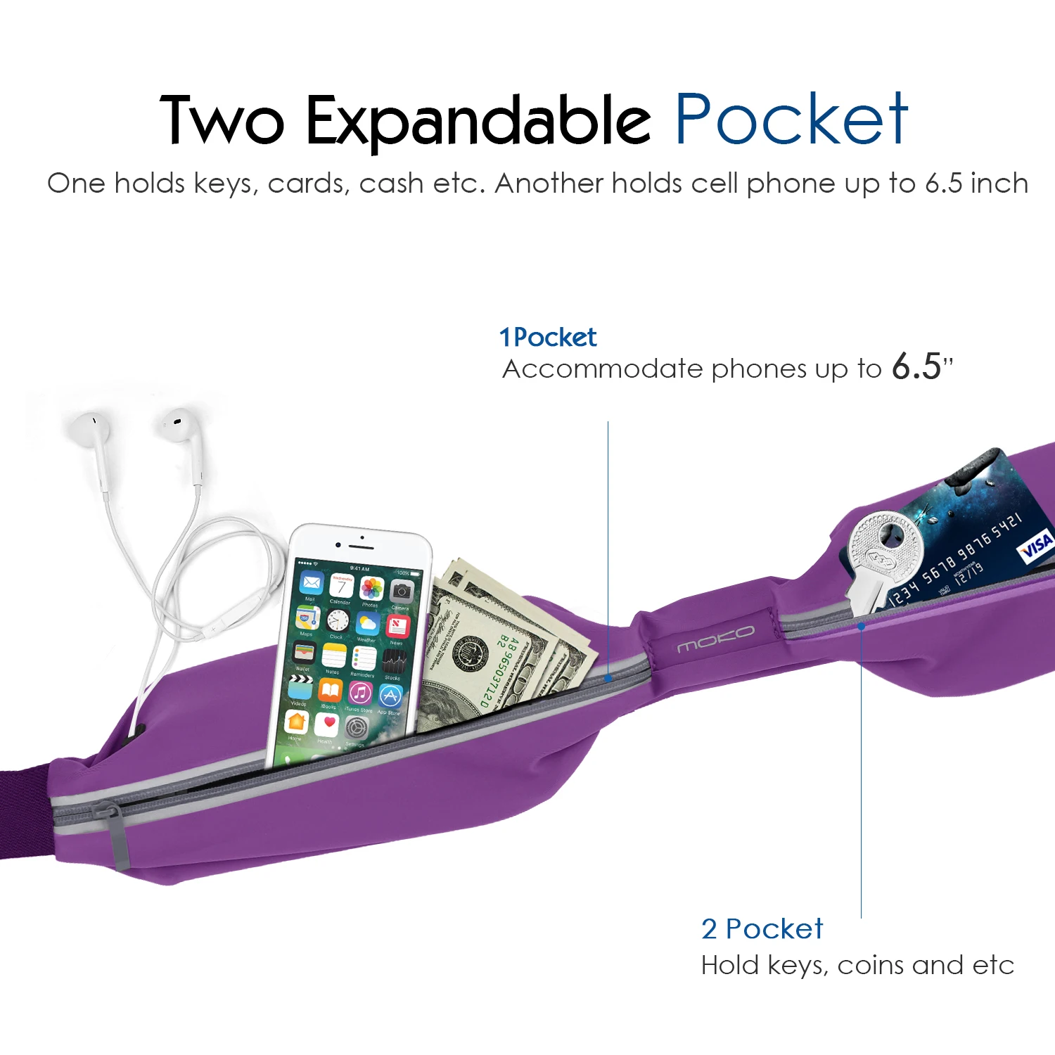 Держатель для телефона для iPhone X/Xs/Xr/Xs Max, 8 plus, 7 plus, 8,7, 6s plus, 6s, 5s, Galaxy Note 10, S10, S10 Plus, S10e, s9 plus, S9, S8 Plus, S8, S7 edge, S6 Edge, Note 9,8, 5, 4, 3, Nexus 5X, Nexus 6, LG G4, Moto Z Droid, Pixcel XL, ключи, кредитные карты и многое другое до 6,5 дюймов. Имеет сочетание функциональности и стиля. Два кармана дизайн, ультра легкий с дополнительной сеткой для хранения Отделите телефон и наушники, кошелек, наличные, монеты, ключи или любые другие острые вещи сохраняют ваши товары в безопасности и защищении. Идеально подходит для спорта, путешествий, езды на велосипеде, альпинизма, прогулки, шопинга и многое другое. Регулируемый и Съемный поясной ремень: 75-90 см/29,5-35,4 дюйма, максимальная длина растяжения: 55 дюймов. Две управляемые пряжки позволяют легко регулировать длину ремня, чтобы соответствовать талии. Встроенная светоотражающая лента вокруг молнии для безопасного бега в условиях низкой освещенности.