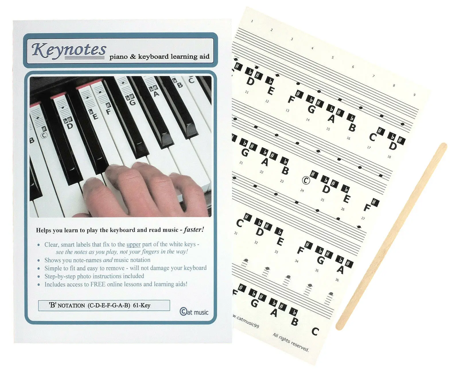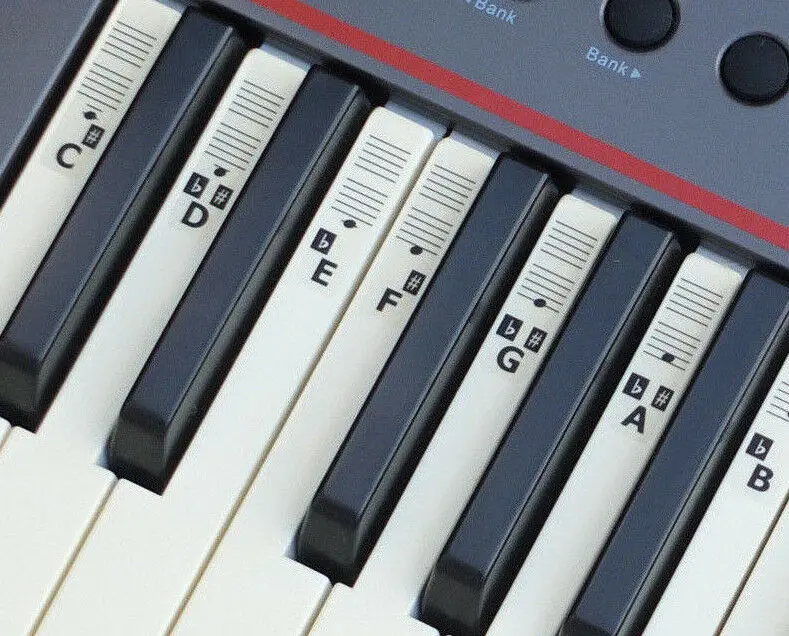 Включает 52 наклейки для белых ключей и 36 для черных ключей, всего 88 наклеек.