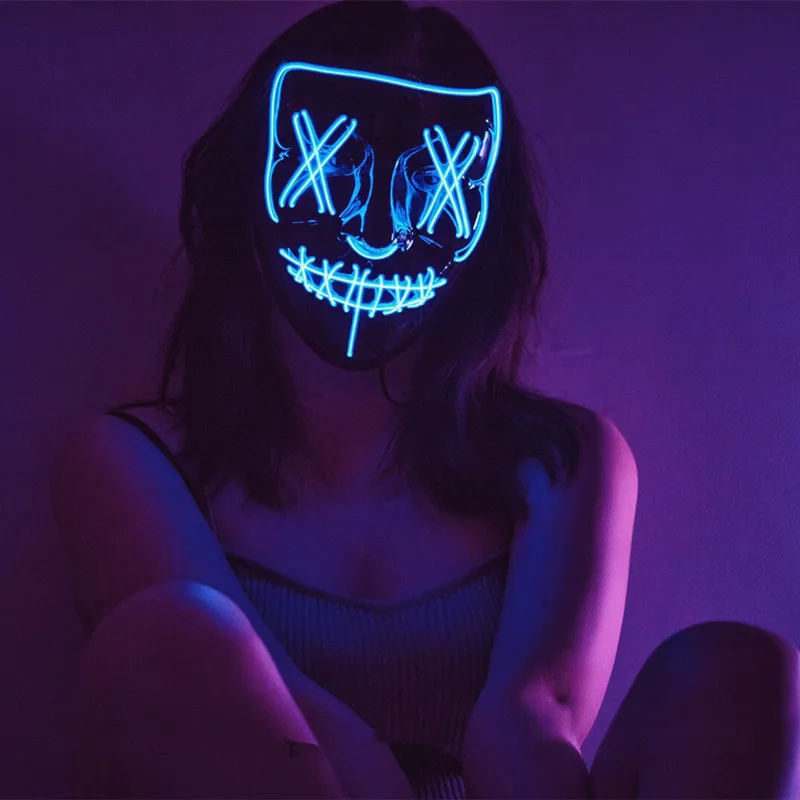 3. Эта маска изготовлена из высококачественного ПВХ и El холодный светильник, без УФ-повреждений, без побочных эффектов на тело человека.