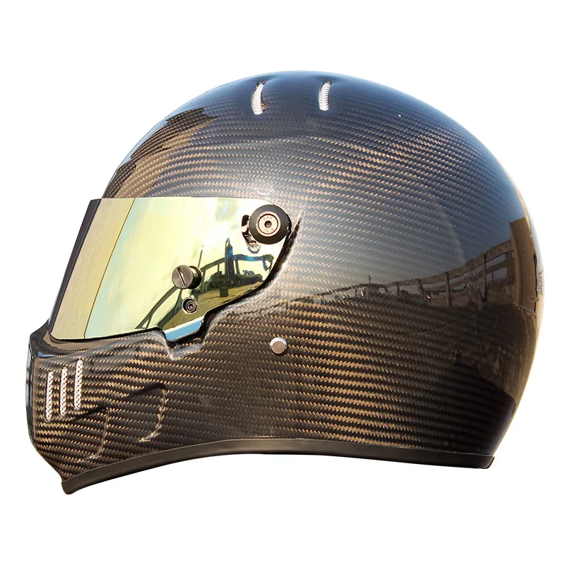 Винтажный мотоциклетный шлем из углеродного волокна для мужчин, паровозик, гоночный автомобиль, полнолицевой шлем, Радужный козырек, XS-XXL
