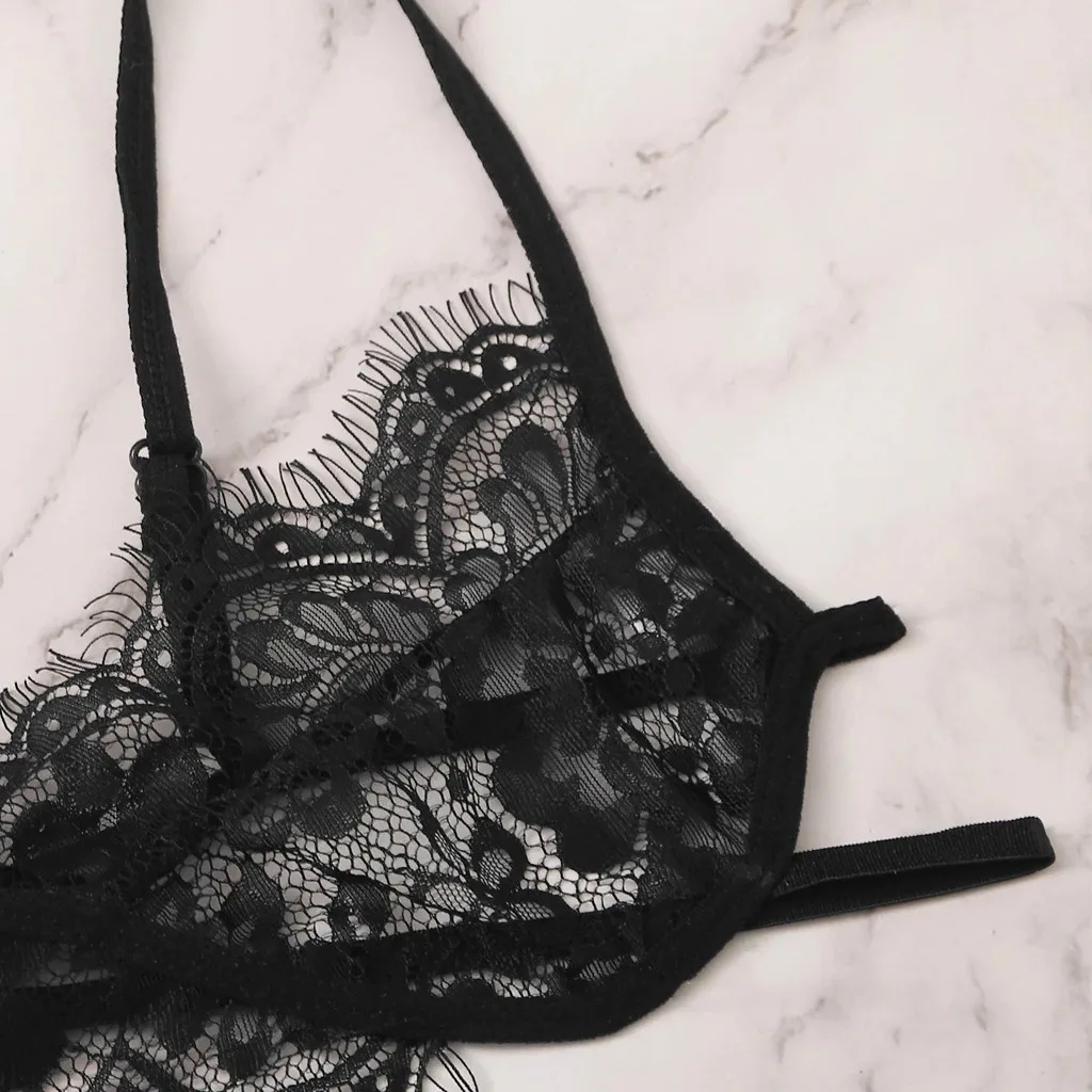 Нижнее белье микро бикини секс-магазин открытый бюстгальтер Lenceria babydoll сексуальный кружевной бюстгальтер бандажные стринги ночное белье с подвязками черный комплект нижнего белья #35