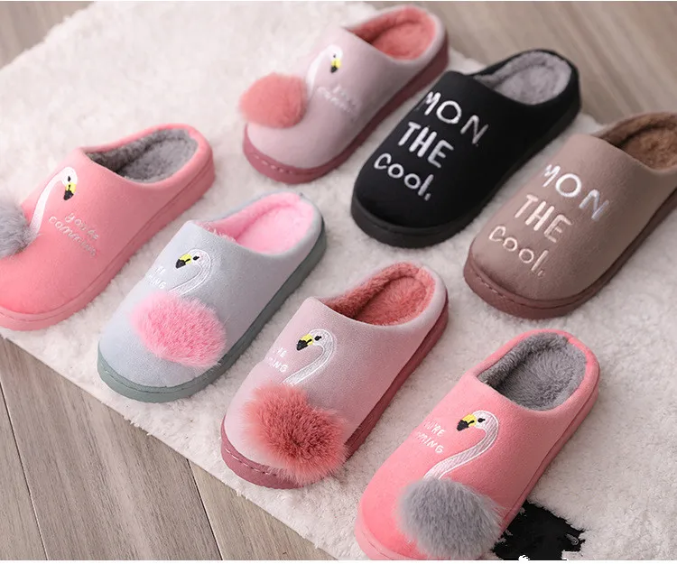 Женские тапочки; Зимняя теплая обувь с милым рисунком; Модные шлепанцы на платформе; Нескользящая обувь на плоской подошве; Домашняя удобная обувь
