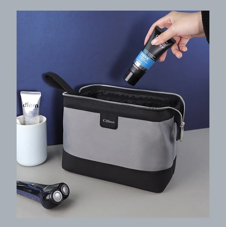 Описание товара Товар: Дорожные косметички Материал: Синтетическая кожа из микрофибры Цвет: серый/коричневый Размер: 24,5*13*15 см/9,64*5,11 * 5.9in