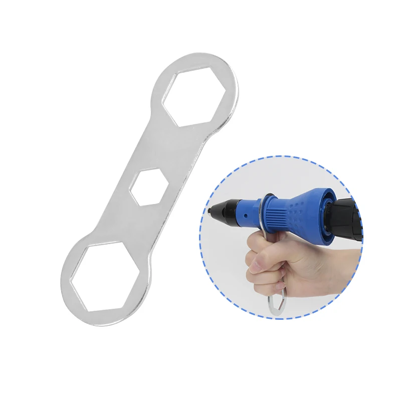 1. Отрегулируйте электрическую дрель до соответствующего положения шестерни. 2. Откройте зажим для сверла, вставьте адаптер, положительное вращение, зажмите соединитель. 3. Включите функцию обратного вращения сверла до тех пор, пока не услышите звук «DADADA», затем поместите заклепку соответствующего размера. 4. Включите функцию положительного вращения, выровняйте отверстия и вставьте заклепки. 5. Включите функцию обратного вращения и выйдите из заклепки.