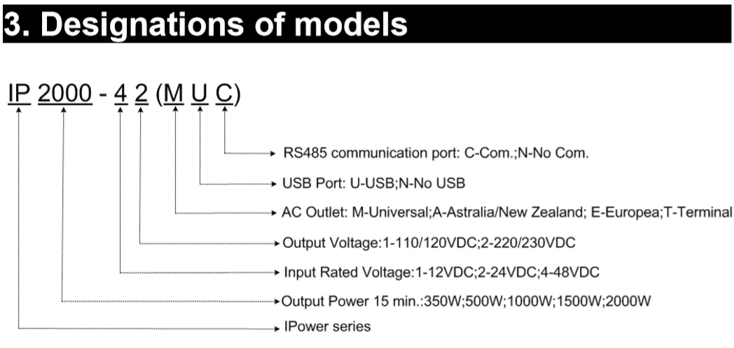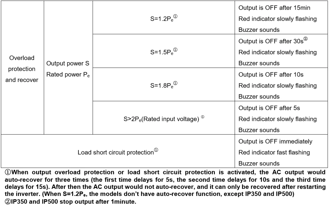 1. Безопасный дизайн с входной и выходной электрической изоляцией 2. Принятие передовой технологии SPWM, чистый синусоидальный выход 3. Дополнительное выходное напряжение 220/230 В переменного тока (или 110/120 В переменного тока), выбор с помощью DIP-переключателя 4. Светодиодные индикаторы состояния неисправности и рабочего состояния 5. Низкое потребление без нагрузки 6. Макс. Эффективность до 95% (IP2000-22, IP2000-42) ① 7. Входная защита: Защита от перенапряжения, защита от низкого напряжения 8. Выходная защита: защита от перегрузки, защита от короткого замыкания 9. Защита от перегрева: вентиляция вентилятора с контролем температуры; инвертор автоматически выключается при перегреве 10. Рабочий usb-выход 5VDC/1A 11. Операционный RS485 коммуникационный порт ② ① Эффективность тестируется при номинальном входном напряжении, выходном напряжении 220 В с резистивной нагрузкой, температуре окружающей среды 25 ℃, 1500 Вт и более высокой версии ② 1000 Вт и более высокая версия поддерживают RS485 порт связи опционально.