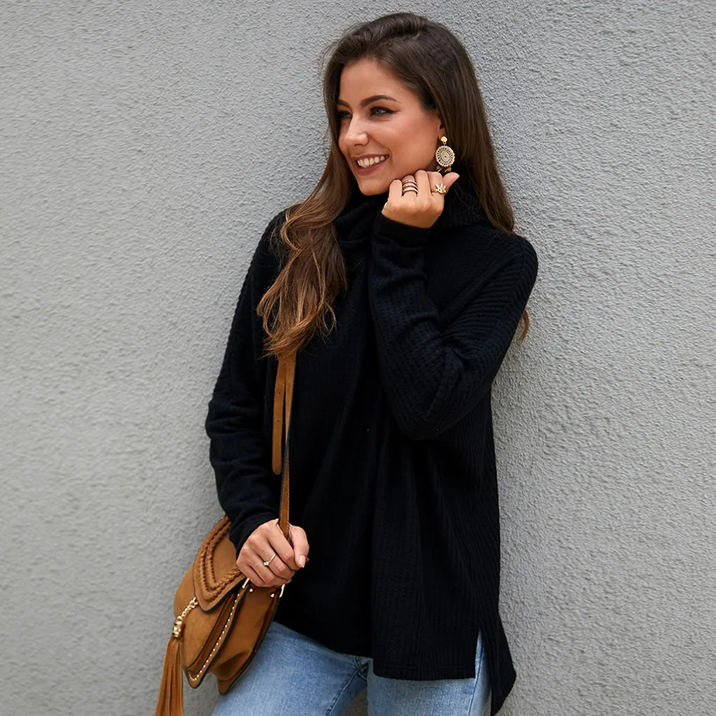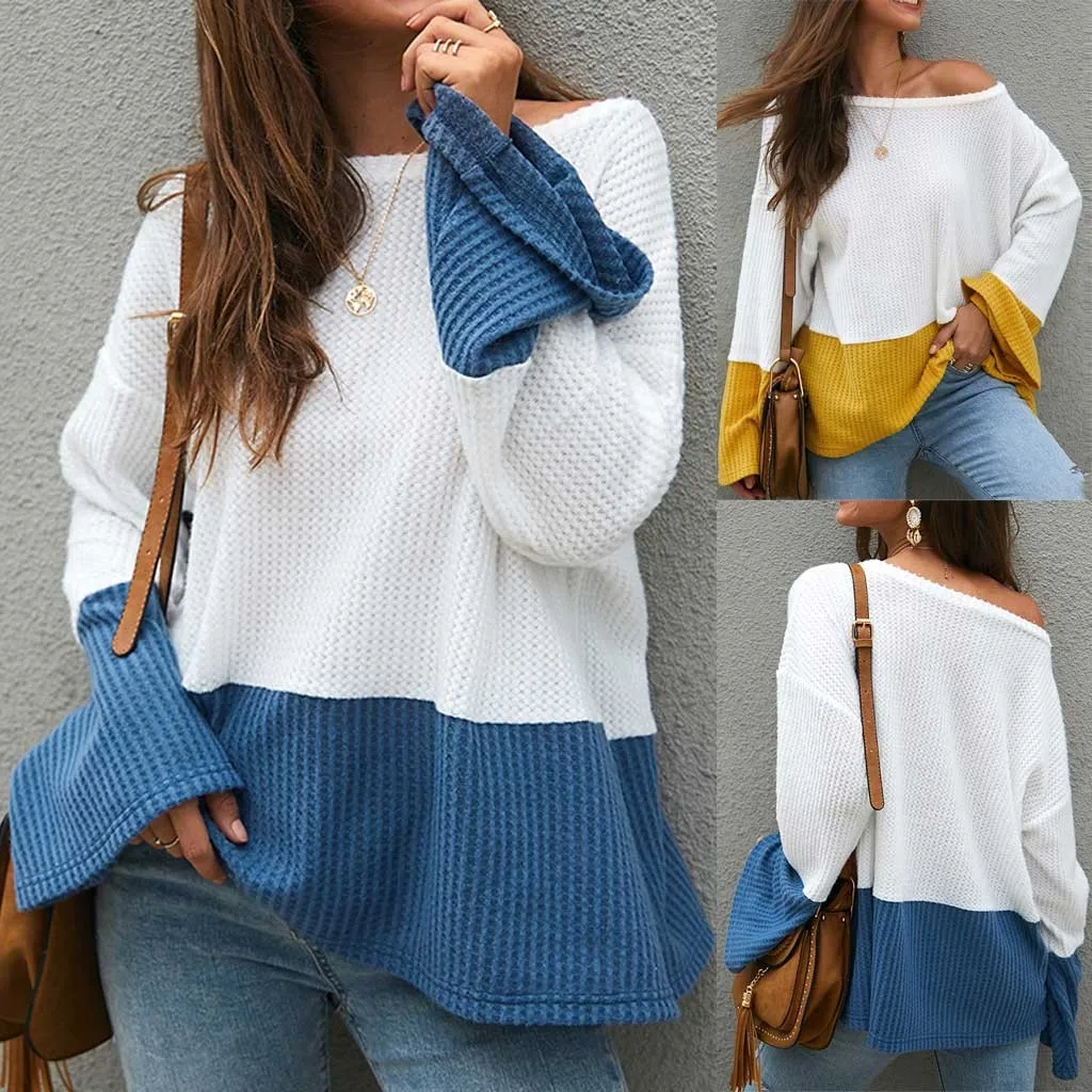 Женский свитер с длинными рукавами, круглым вырезом и расклешенными рукавами