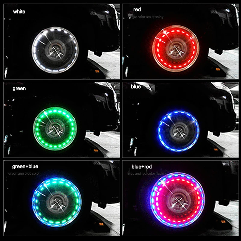 1. Легко установить, просто прикрутите его в положение насадка на колесо; 2 Солнечная зарядка, без проводки, долгий срок службы обслуживания; 3. Светочувствительная система управления, светильник в темной среде, самомигает, когда скорость транспортного средства превышает 25 км/, автоматически закрывается через 2 секунды ниже скорости; 4 силиконовых обертывания, отличная устойчивость к старению и водонепроницаемость; Настоящий водонепроницаемый дизайн. Без батареи, автоматическое открытие, красочный! Одно колесо для одного мотоцикла, два для двух автомобилей, два для доставки) Реальный эффект на светильник (50 км/час равномерная скорость) Порядок использования: кнопка переключения для включения и выключения питания и изменения режима освещения. Просто нажмите кнопку на светильник (первый раз после включения первых двух, в следующий раз, когда вы используете его, вам не нужно будет выполнять какие-либо операции на лампе снова. Далее в ночное Бег светильник s будет автоматически светильник, каждый светильник имеет 4 вида цветов, красный, синий, белый и зеленый.) Посылка: 2/4 шт. автомобильные аксессуары для велосипеда неоновый стробоскоп светодиодный колпачок клапана шины