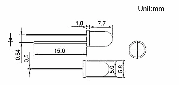 Полярность: анод (более длинная часть) | Катод (более короткая часть)