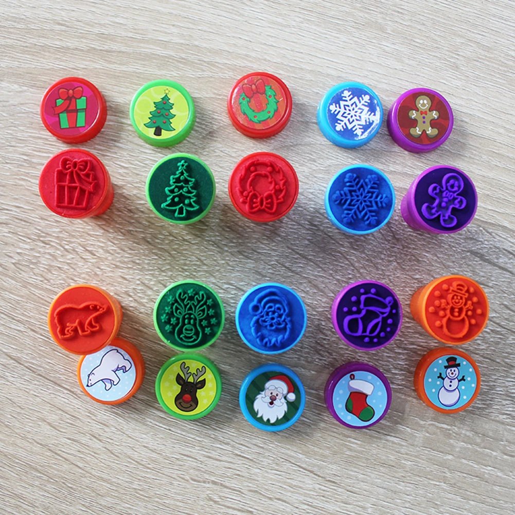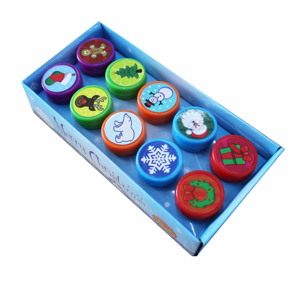 10Pcs Christmas Pattern Self-ink Seal Stamps DIY Scrapbook Toy Party Favors