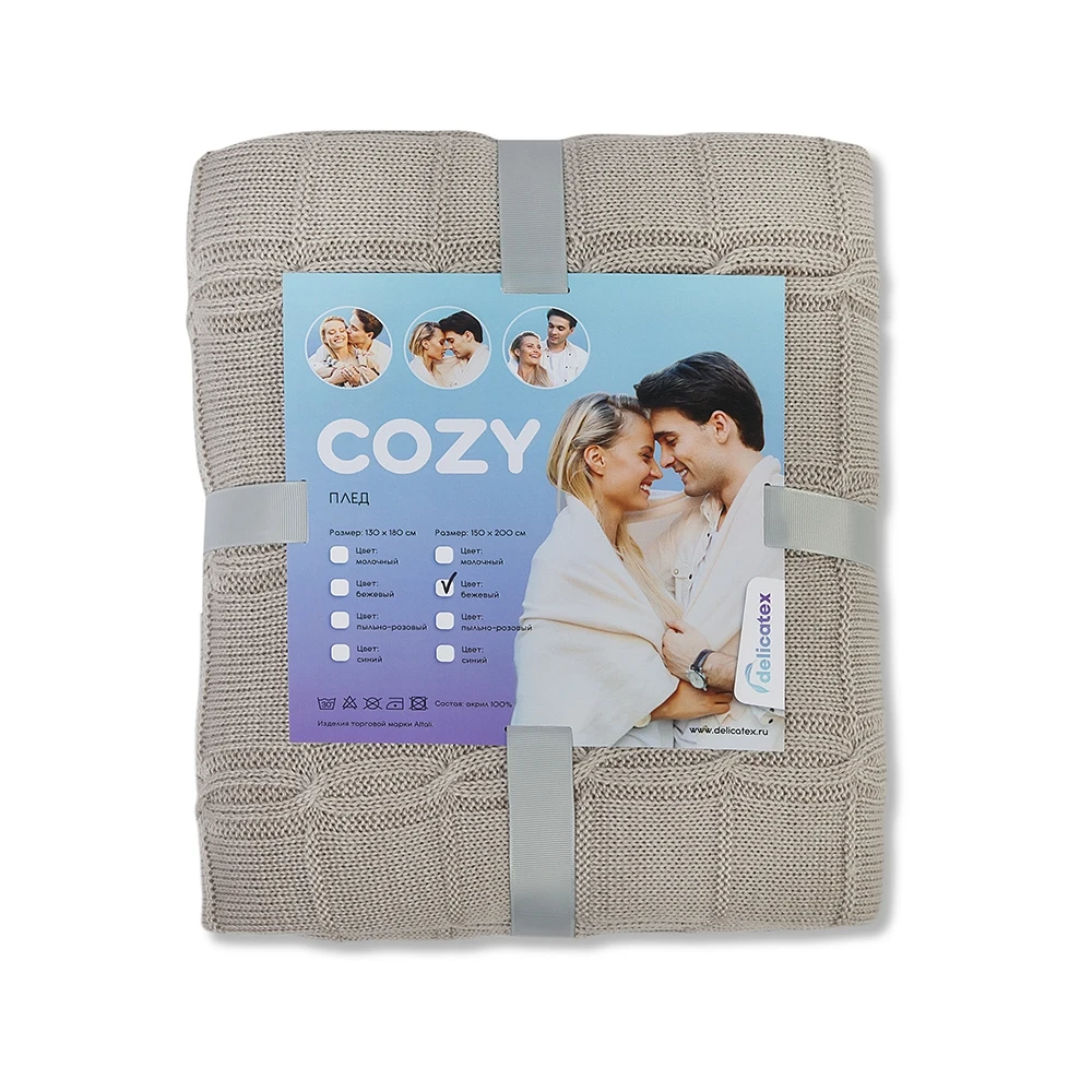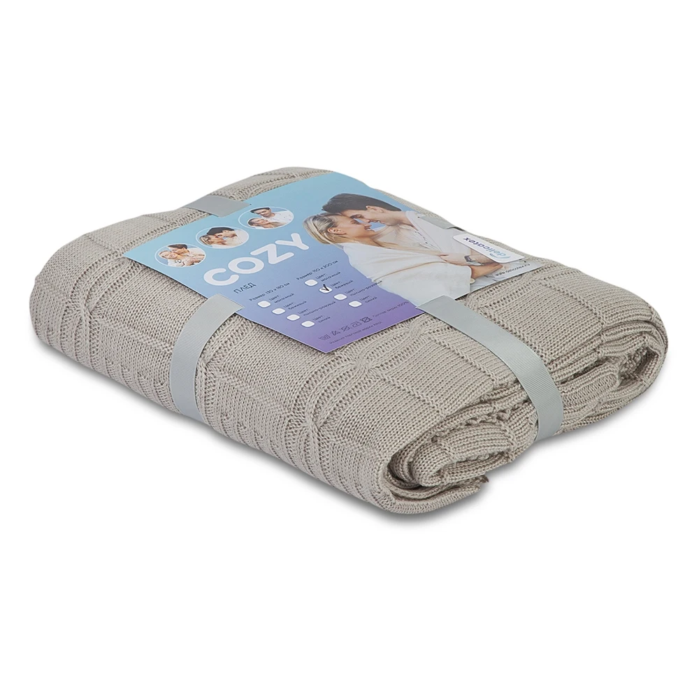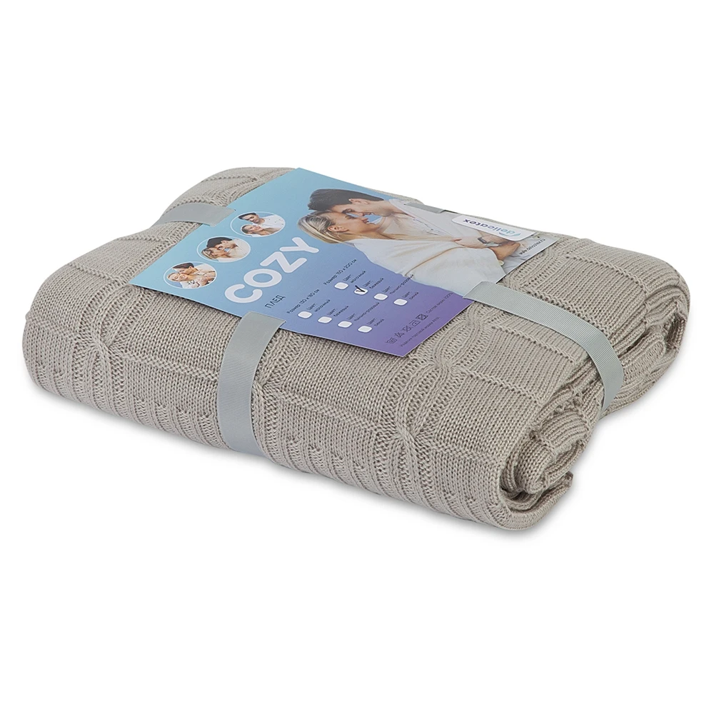 Вязаный плед COZY пригодится в любое время года. Изделие выполнено из мягкой объемной пряжи с модным узором «косичка». Плед легкий, приятный на ощупь и достаточно большой, чтобы укрыться и с комфортом посмотреть фильм или почитать книгу. Плед COZY легко стирать, загрязнения удаляются при стирке 30°, он не электризуется и не вызывает аллергию, поэтому подойдет для детской. Удобство, комфорт, стиль и экологичность в одном предмете.