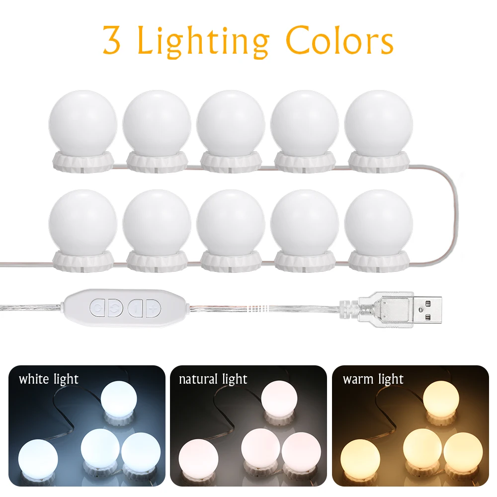 10 светодиодов косметическое зеркало светильник лампы с 3 светильник ing режимов и 10 яркость цветов, позволяя вам макияж в течение длительного времени, не повреждая или проблемы с для ваших глаз.