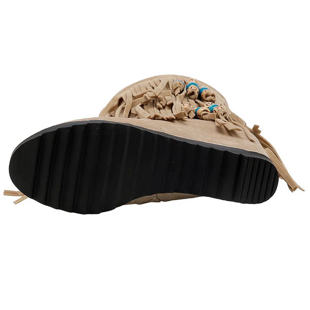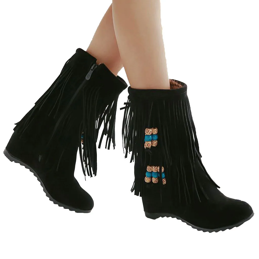 Женские замшевые ботинки с бахромой зимние ботинки с вышивкой модные ботинки