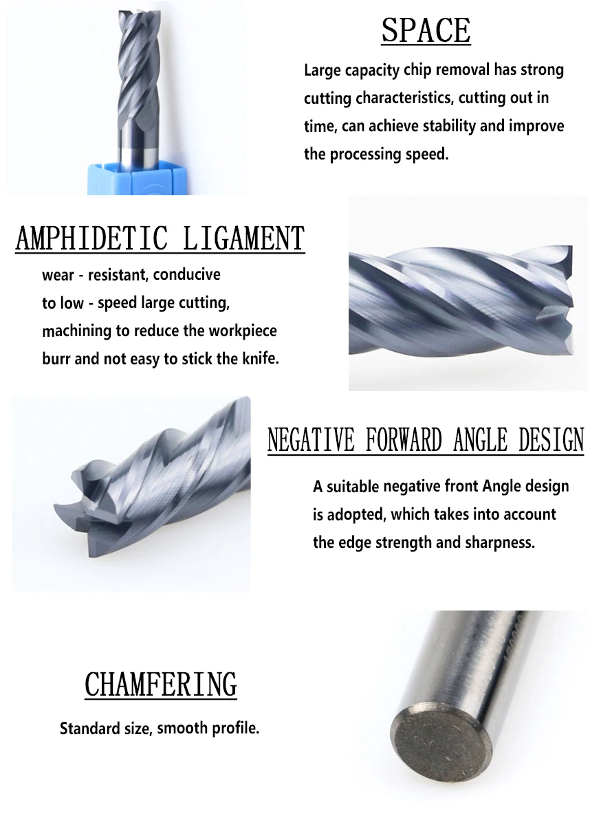 Принять новые мелкие частицы вольфрамовой стали материал имеет высокую износостойкость и прочность, чтобы принадлежать к высокой твердости высокоскоростной резки применение эксклюзивный фреза, и использовать tiain покрытие, 45 градусов до 45 градусов и термообработка материалов непосредственно к грубой обработке для тонкой обработки, Уменьшите время перекоса, улучшайте скорость зерна машины, экономьте Ограничение производства, при резке лицевого фрезерования приоритет отдается короткому боковому фрезерованию.