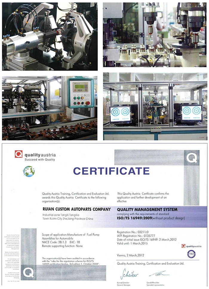 Особенности: у нас более 20 лет опыта в производстве топливного насоса. Каждый продукт изготовлен в ISO 9000 / ISO 9001 / ISO 9002 сертифицированных объектов с изысканным мастерством. 100% механическое тестирование до выхода из фабрики обеспечивает оптимальную производительность и повышенную долговечность