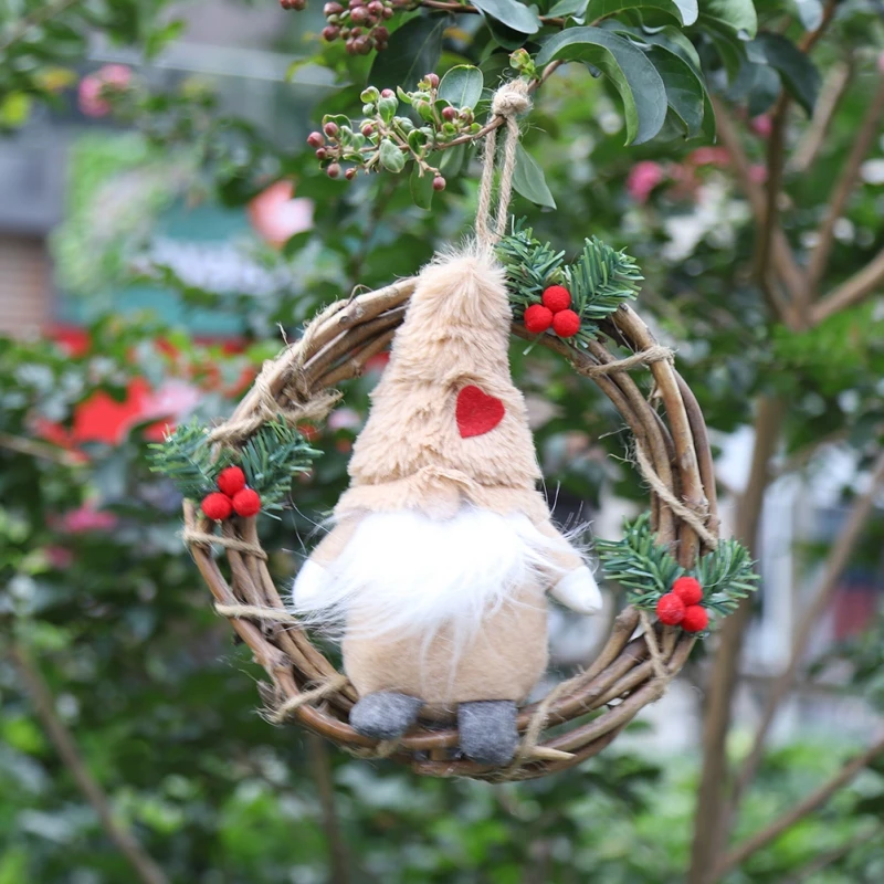 Веселый Рождественский плюшевый гномик кукла ротанга венок рождественские гирлянды с Швецией Санта дом дверь окна Декор зала Рождественские венки