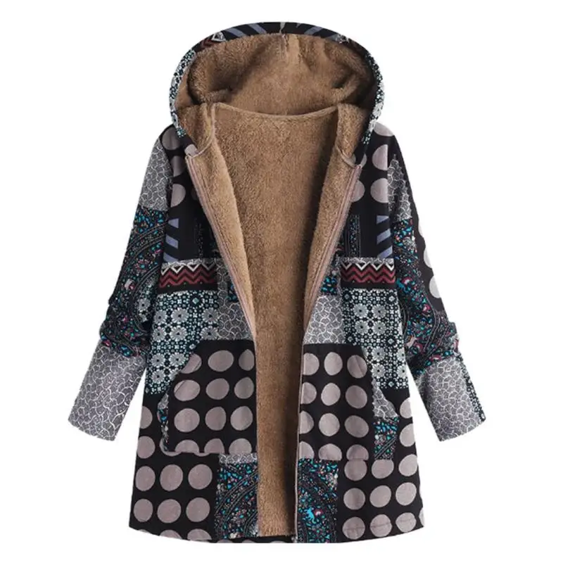 Этнические Большие размеры женские флисовые толстовки с принтом кардиган с длинными рукавами пальто зима осень женская повседневная верхняя одежда