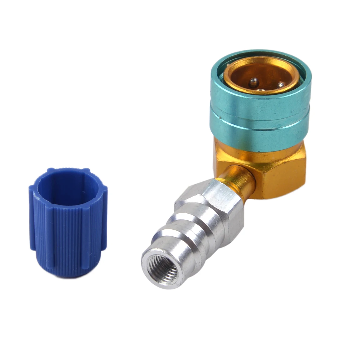 Состояние:100% новый Цвет:Синий и золотой и серебряный Материал:Алюминиевый сплав и пластик Размер:Как показано на картинке Товар включает в себя:1 x Быстрый разъем R1234YF Совместимость с:Подходит для универсальных автомобилей