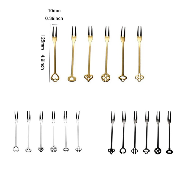 6 шт., нержавеющая сталь, салат, фрукты, вилки, креативный торт, коктейль, десерт, вилка, кухонные аксессуары, столовая посуда, золото, вечерние, кухонный инструмент