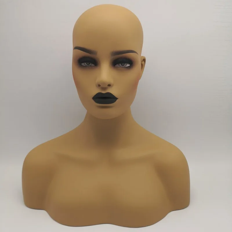 A) Материал: стекловолокно Б) реалистичные окрашенные вручную глаза C) реалистичные настоящие ресницы D) окрашенные вручную брови E) отверстия для сережек F) измерение: Высота: 17 ''. Окружность головы: 21,5'' Из-за ручного измерения допускается погрешность в размере. Пожалуйста, обратите внимание: Любые показанные аксессуары не включены. Из-за ограничений, связанных с цифровой фотографией и различными компьютерными мониторами, может быть небольшое изменение цвета, когда голова просматривается лично.