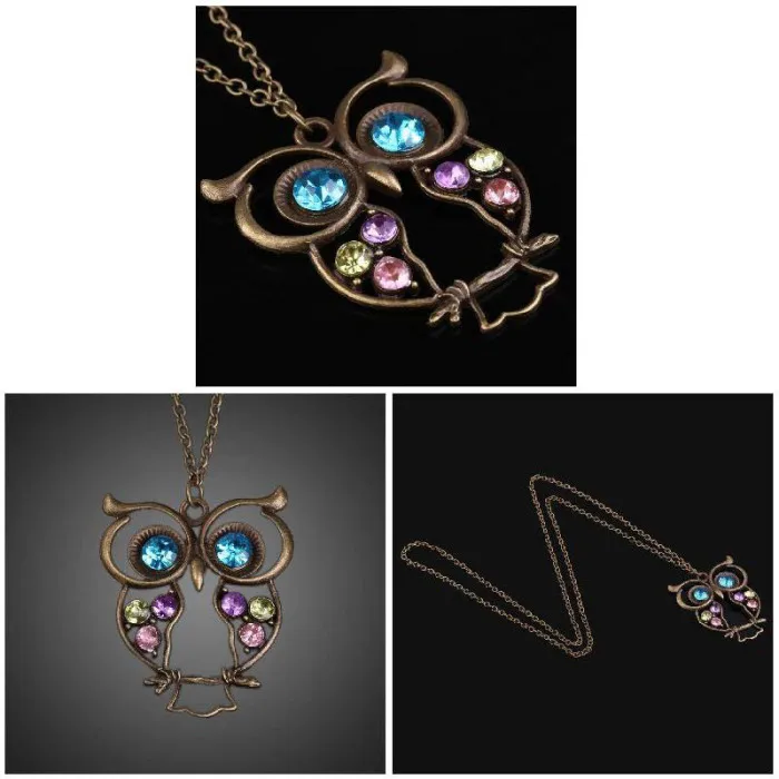 Новый Свитер Ожерелье Винтаж Стразы Сова ювелирные изделия длинный кулон MV66