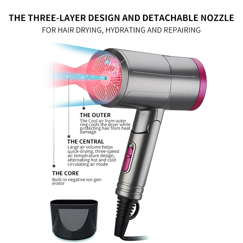 Высококонцентрированные отрицательные ионы нейтрализуют положительный заряд волос, уменьшают статическое накопление волос, затягивают чешуйки и глубоко питают волосы, демонстрируя естественный блеск.