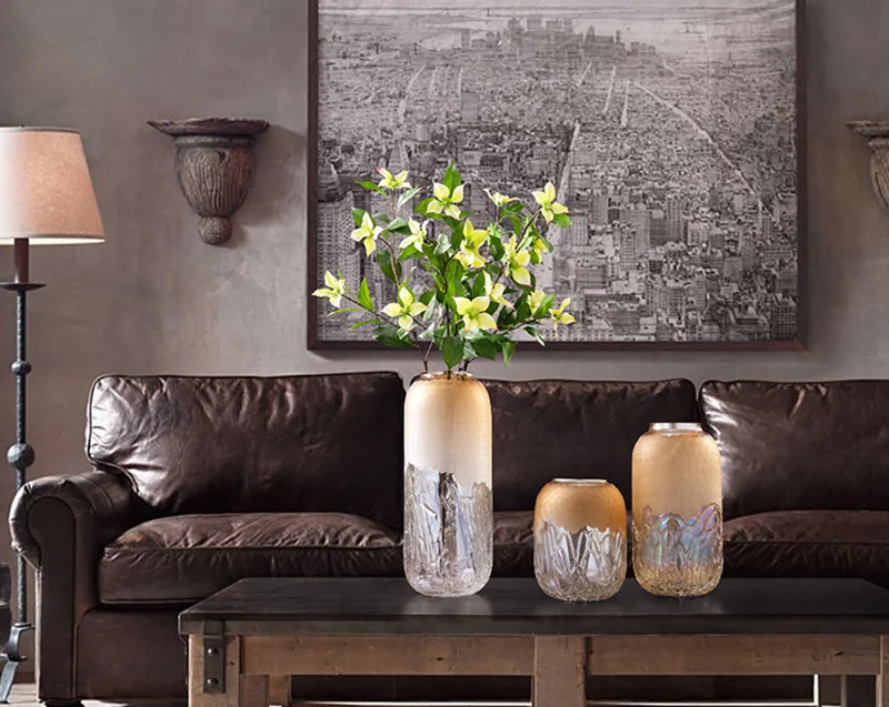 Высококачественное стекло ваза современная Гальваническая Золотая большая ваза вазы для домашнего декора сушеная ваза бар усадьба украшения