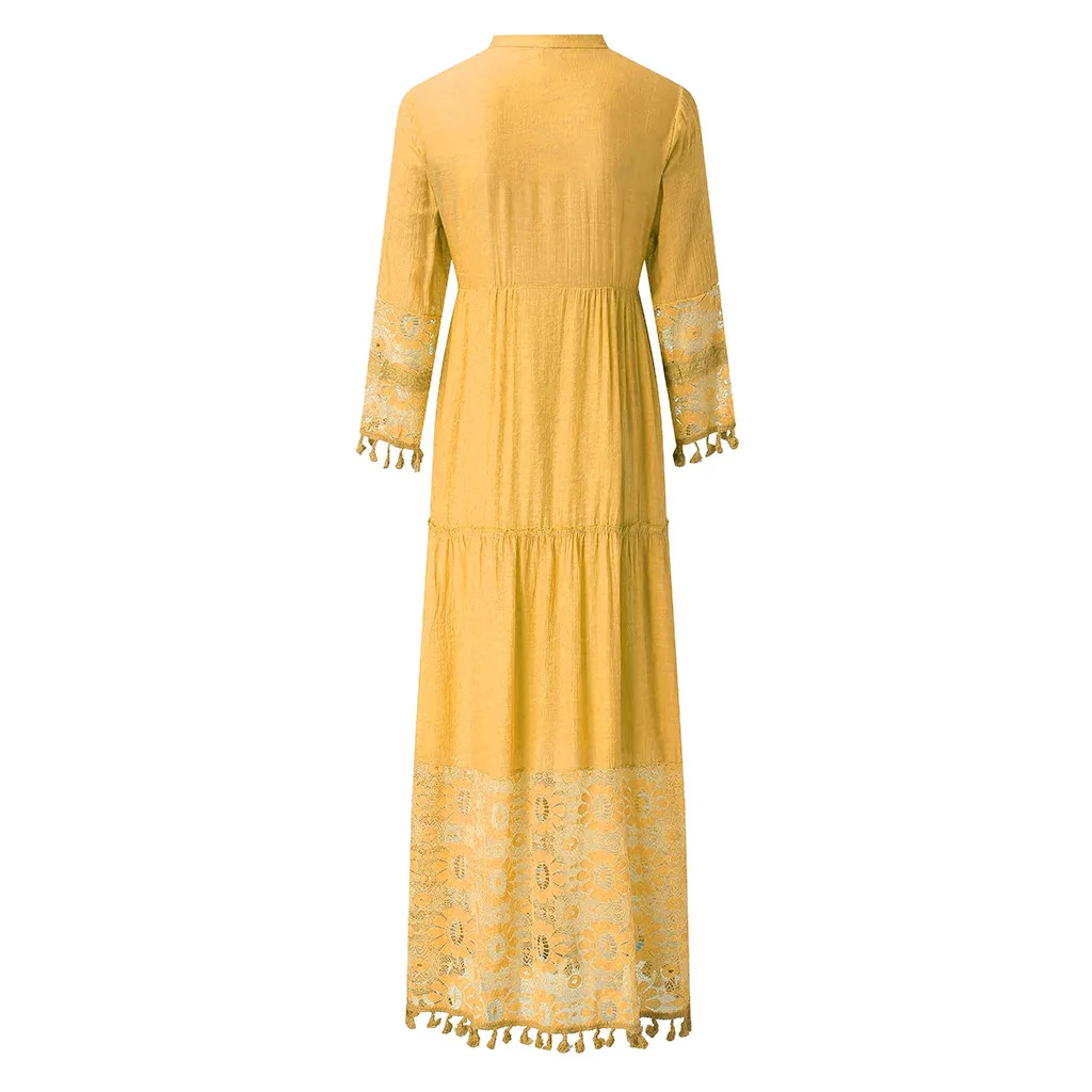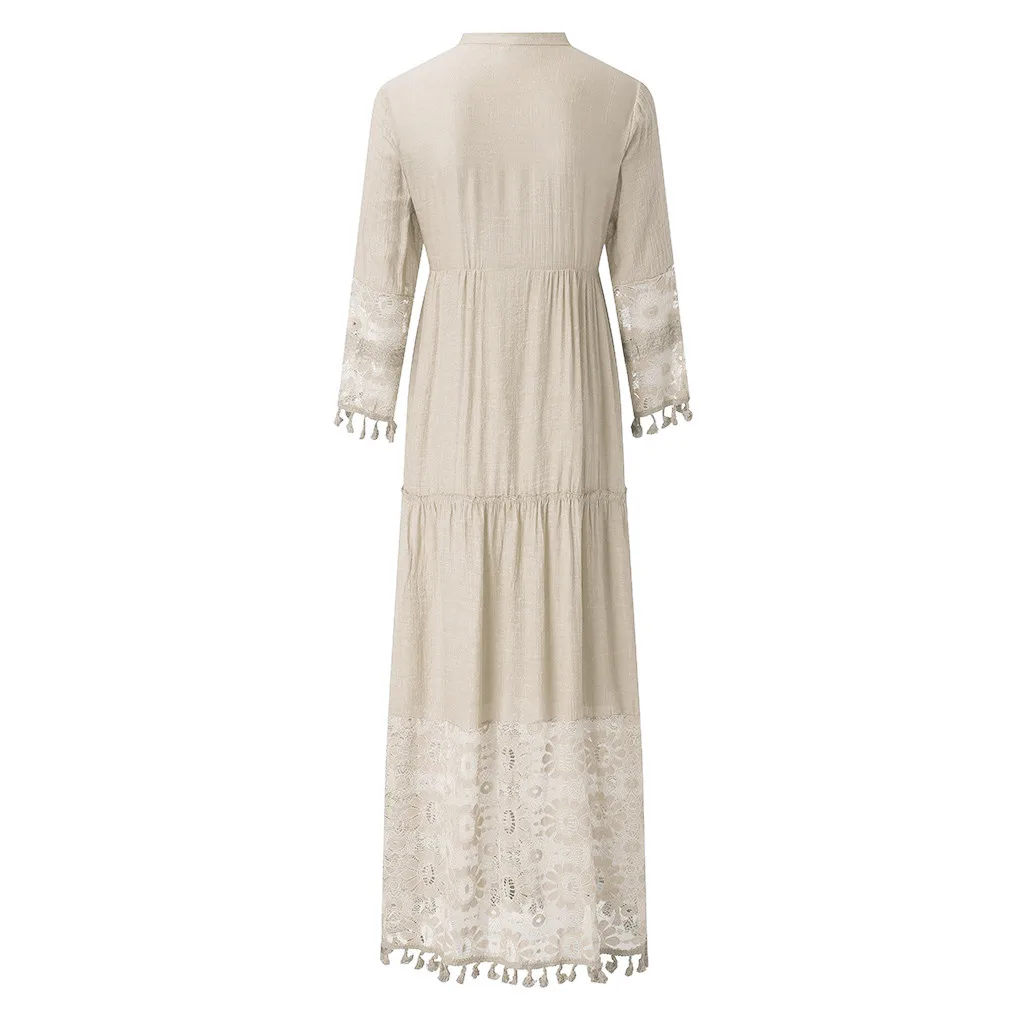 Модное повседневное богемное платье большого размера с v-образным вырезом, однотонное кружевное длинное платье с кисточками