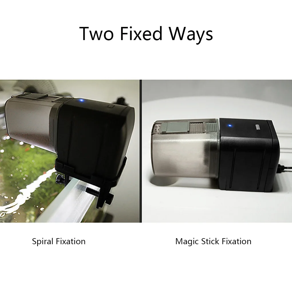 Two mounting methods (fixing clip and sticker tape). Attention not to twist the container by hand, it will cause damage and shorten the feeder's life.