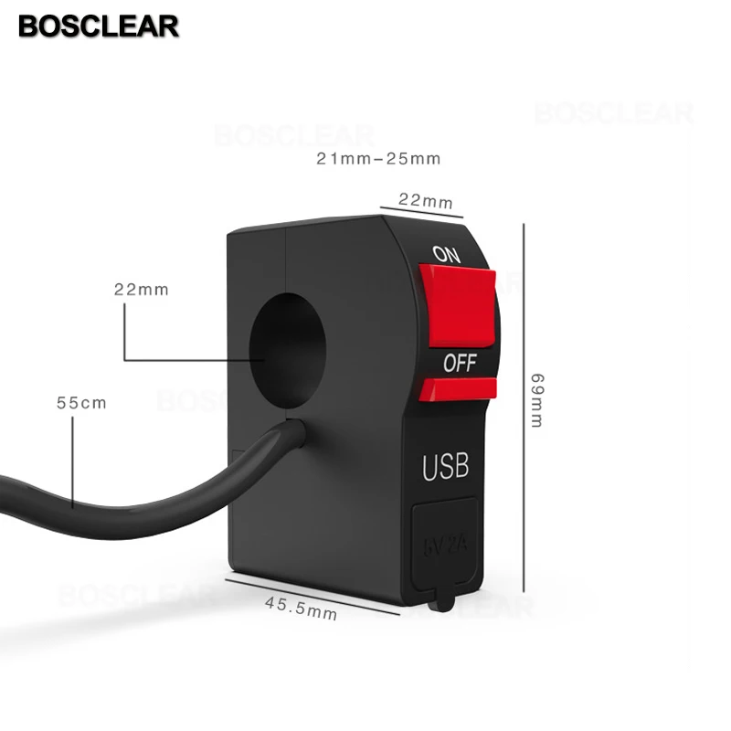 Переключатели для мотоциклов, кнопка включения/выключения фар для мотоцикла, переключатель управления на руль с usb-зарядкой 2,1 А