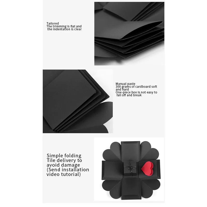 DIY Взрывная коробка: в сложенном виде коробка выглядит как Подарочная коробка, и когда открыть крышку, все стороны упадут и станут большой многослойной картой.