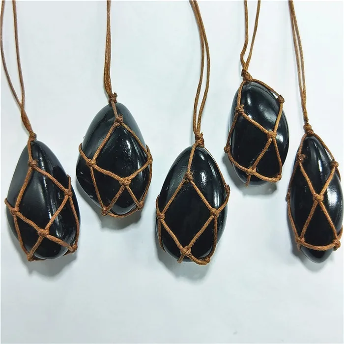 Wholesale 6pcs Natural Stone obsidian necklace Lucky pendant for Jewelry volcanic crystal dragon hand made