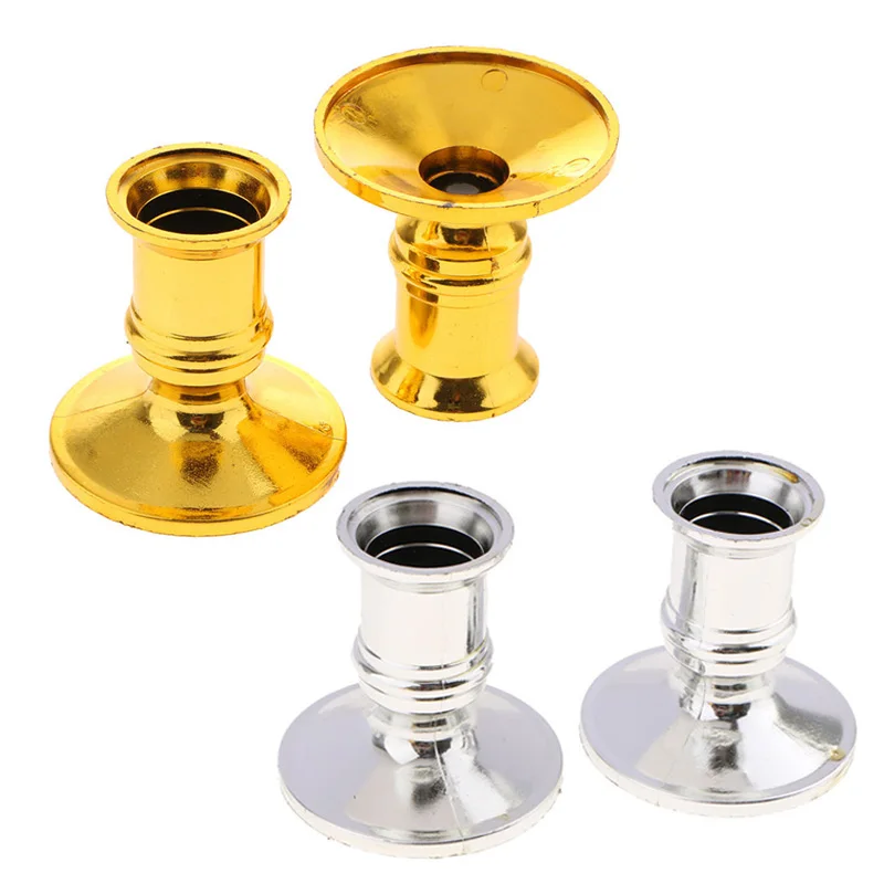 * 1 пара золото + 1 пара серебряный пластиковый подсвечник электронная коническая свеча база