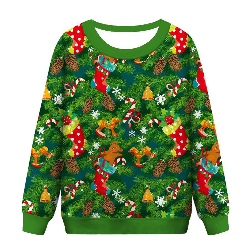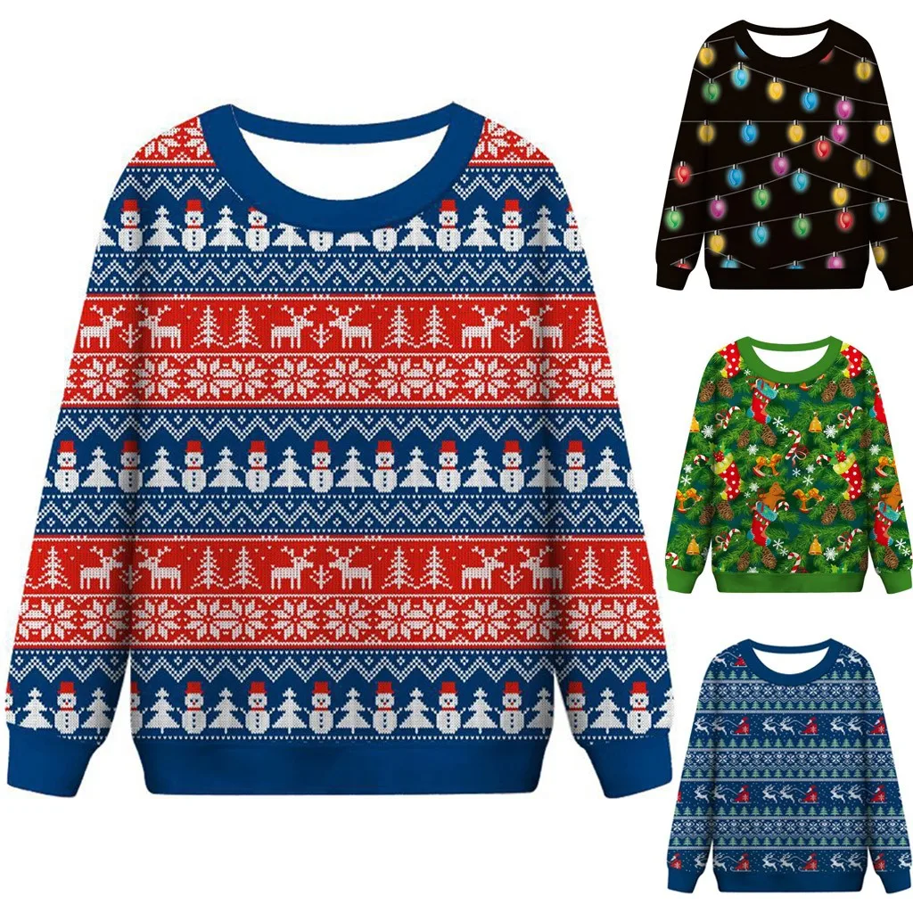 Женская Рождественская Толстовка с забавным принтом, топы с круглым вырезом и различными дизайнами