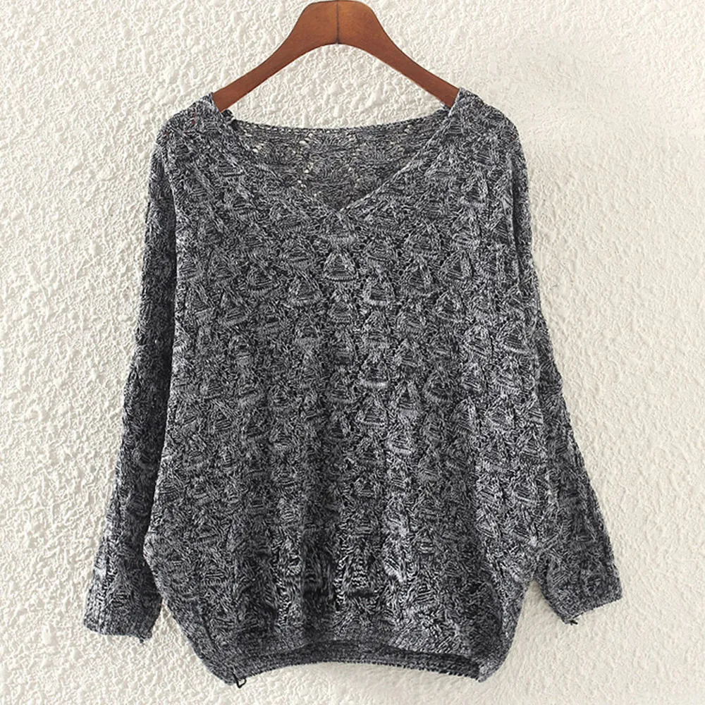 Женский ажурный свитер с длинными рукавами «летучая мышь», свободный свитер с v-образным вырезом