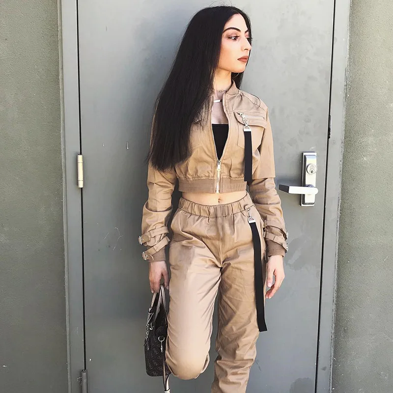 Женский спортивный костюм Kahaki черного цвета, комплект из двух предметов, укороченный топ и брюки карго, костюм, уличная мода, спортивный костюм, спортивный костюм, костюм