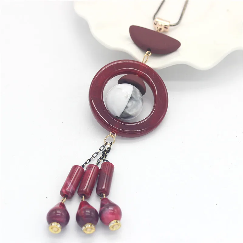 НОВЫЕ геометрические ожерелья с деревянными элементами, подвески, массивная цепочка для свитера, ожерелье из смолы с цветком для женщин, ювелирное изделие, цепочка под змеиную кожу