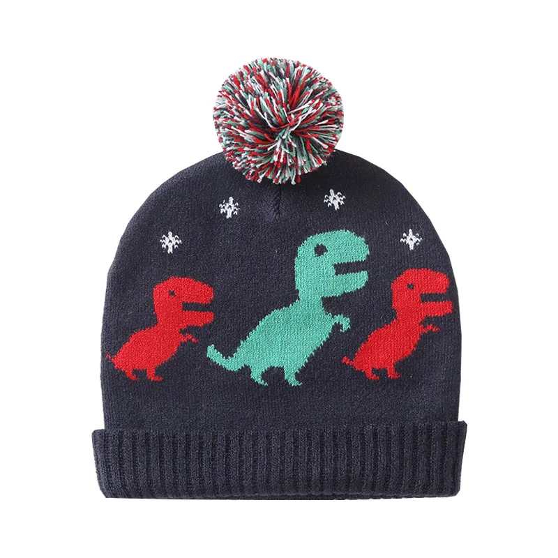 Зимняя теплая детская шапочка с принтом динозавра для мальчиков и девочек, вязаная шапка с помпоном для малышей, Осенние вязаные шапки для младенцев, ветрозащитные