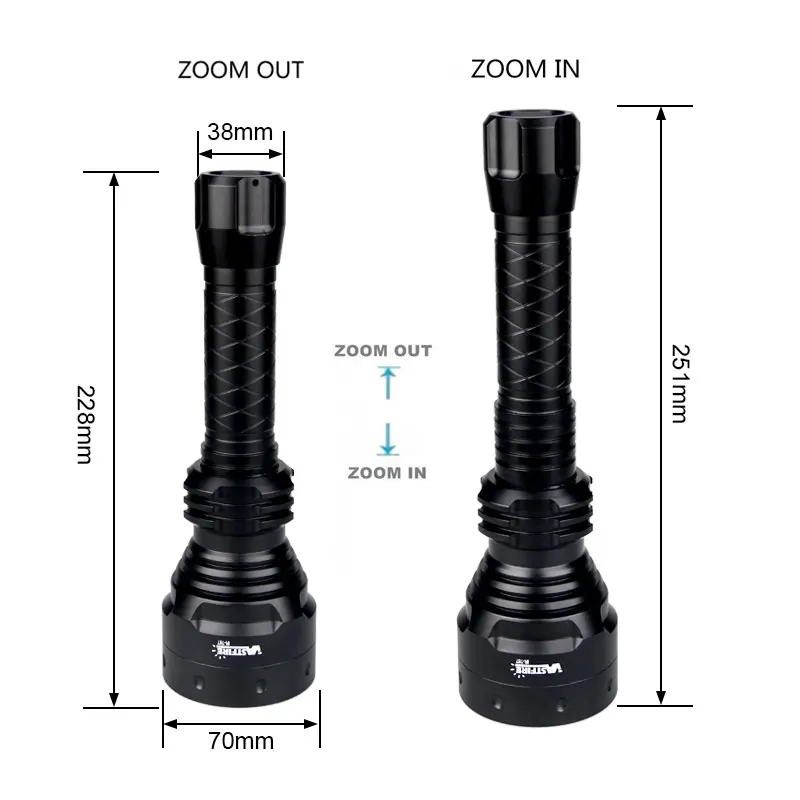 Размеры: 228 мм (уменьшение зума + 23 мм) (длина) / 70 мм (головка) / 30 мм (корпус) / 39 мм (хвост)