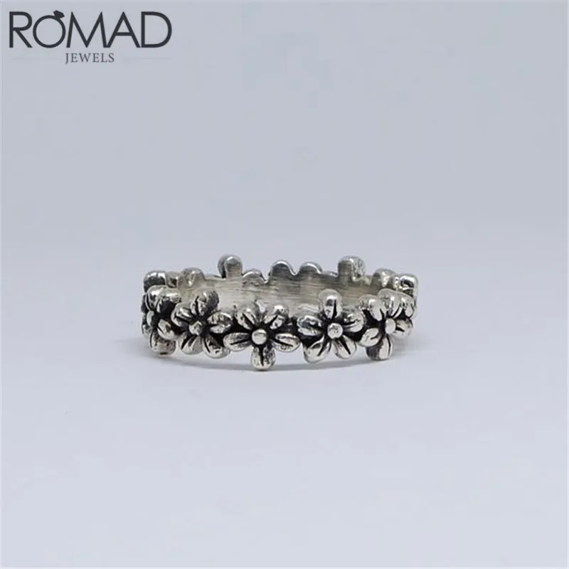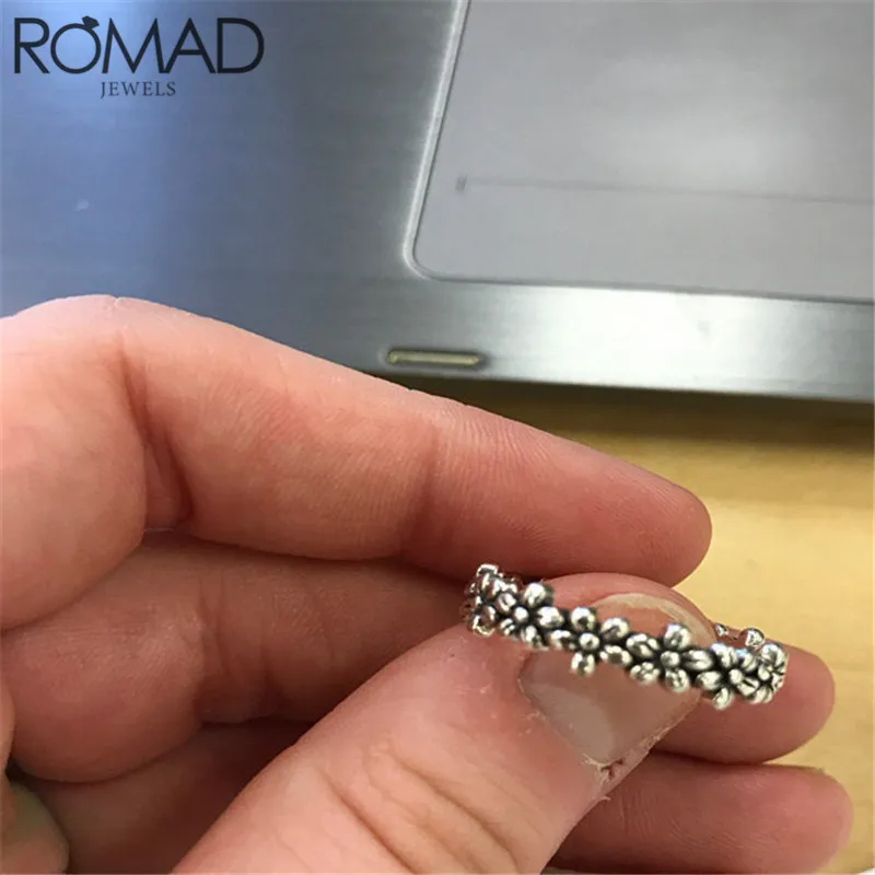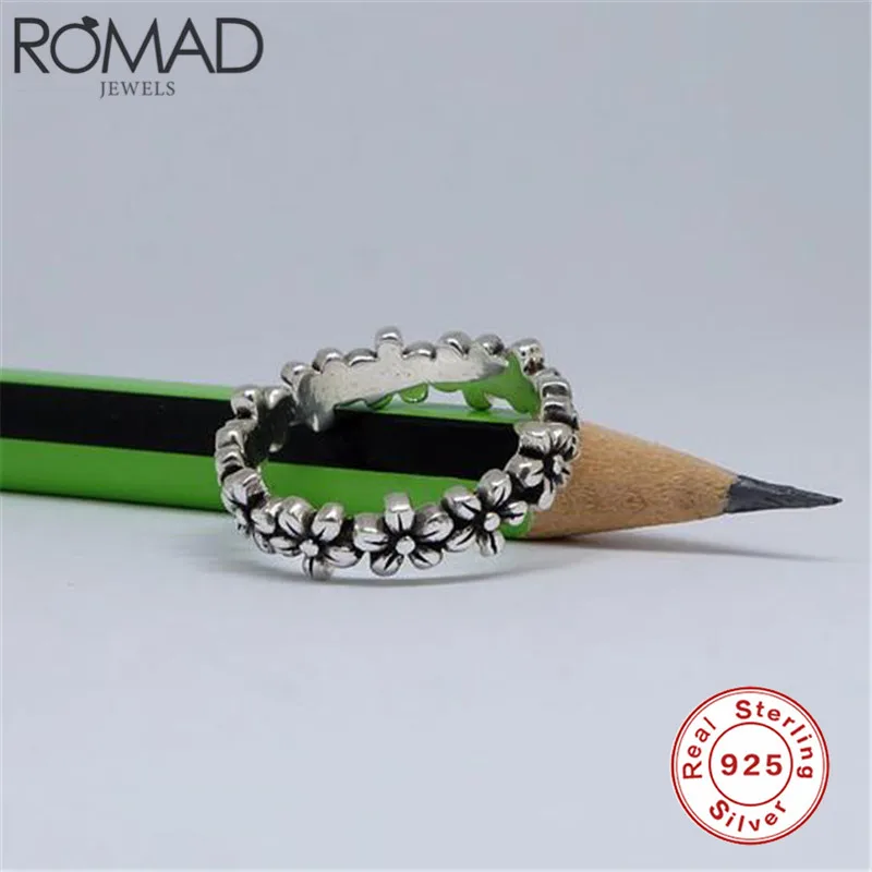 ROMAD Винтаж ромашки цветок кольца Euramerican простые Крошечные Цветочные палец кольцо для женщин штабелируемые кольцо из стерлингового серебра 925 ювелирные изделия