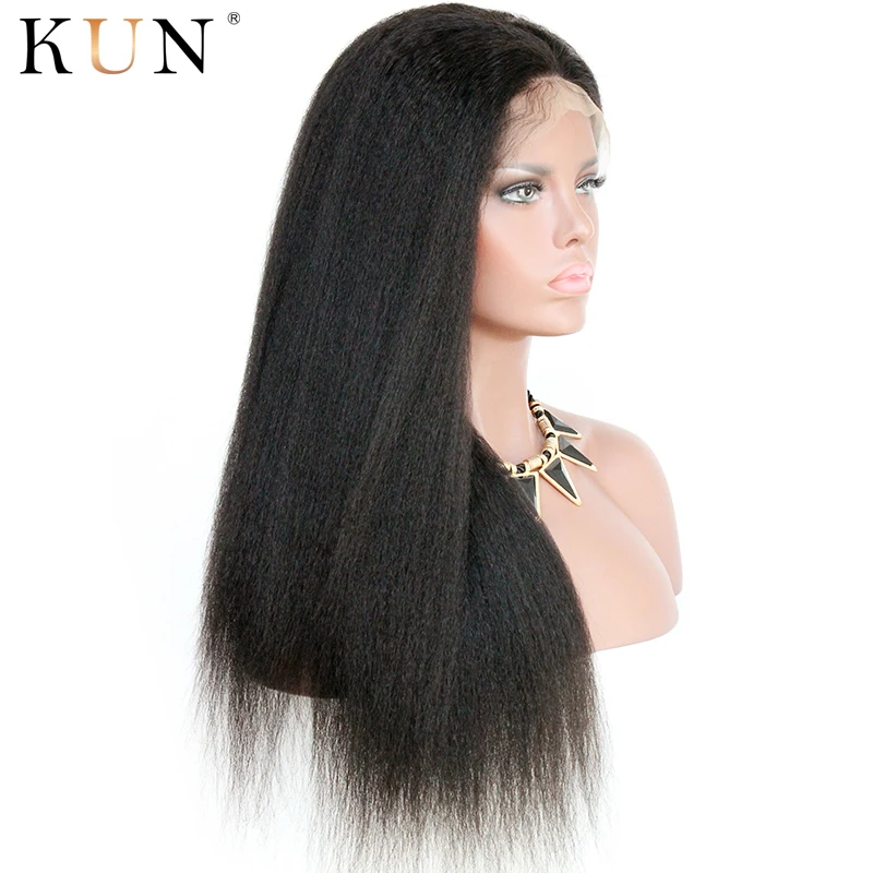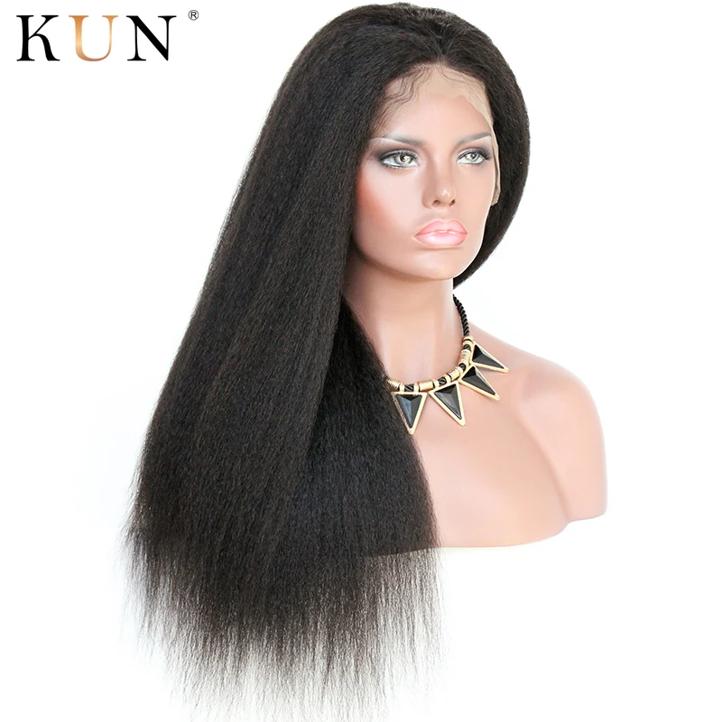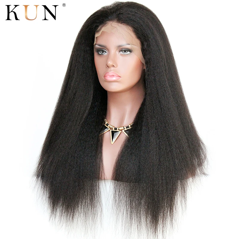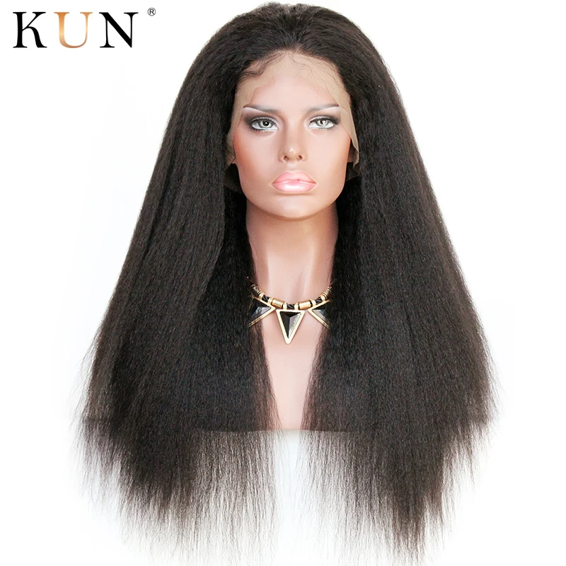 Итальянский парик из человеческих волос Yaki 13x4 13x6, парики из натуральных волос на шнурках, кудрявый прямой парик, бразильские волосы Remy 150 250 густой парик с подкладкой