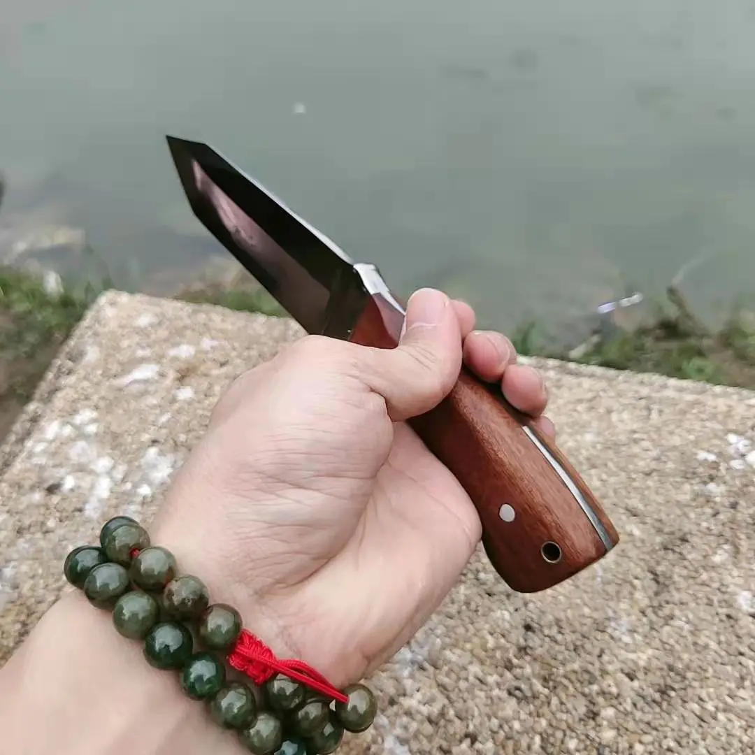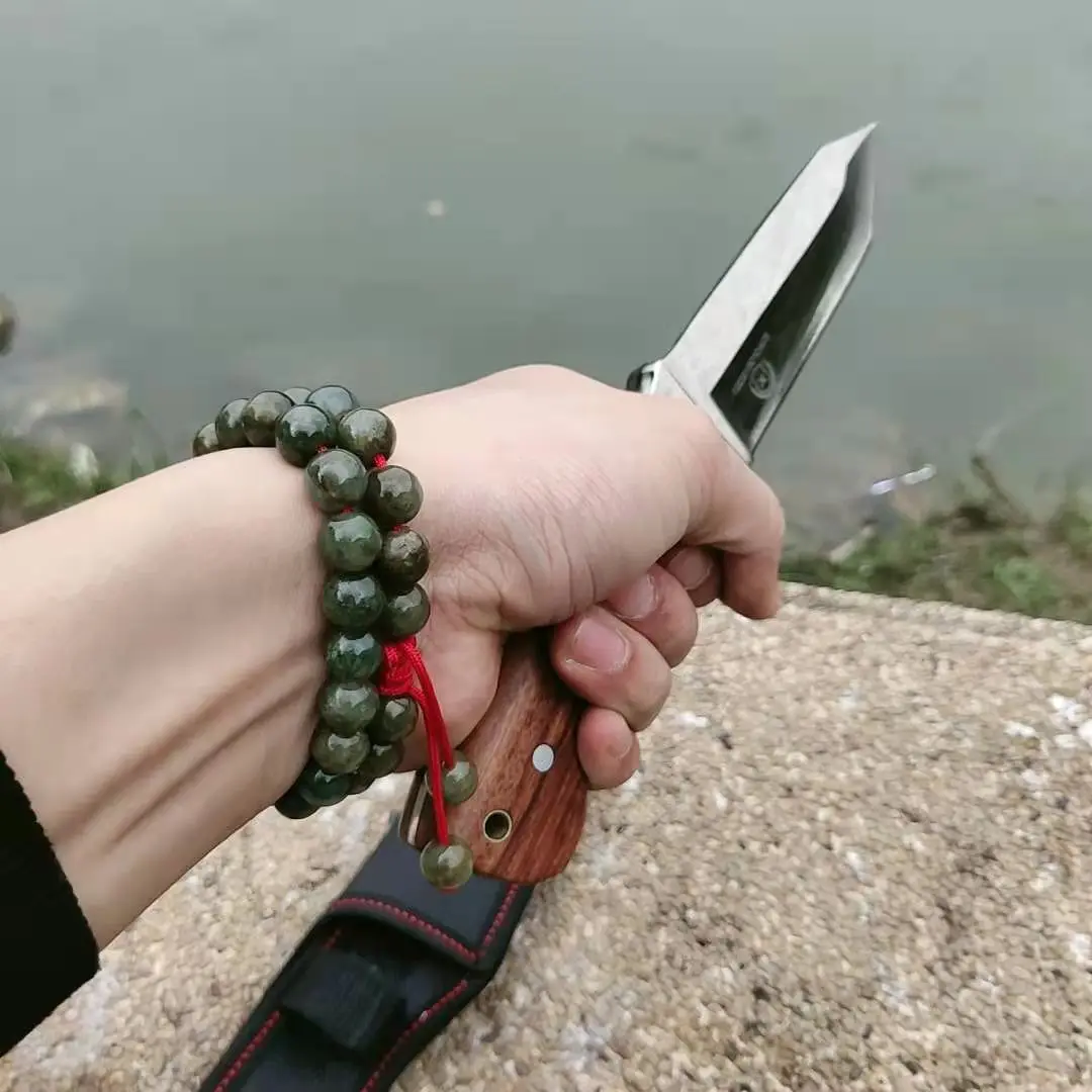 A3195 hunting straight knife tactical knifeFixed Knives,steel head+solid wood handle Survival Knife,Camping Rescue Knife tools